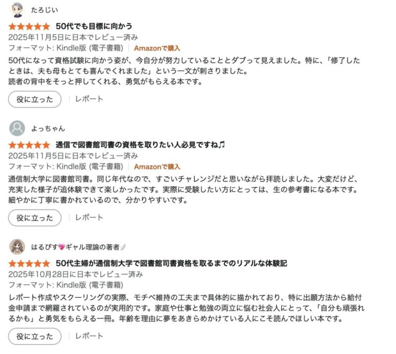 10月25日に発売したKindle『50代主婦が通信制大学で図書館司書の資格を取る』おかげさまで好評発売中です。
